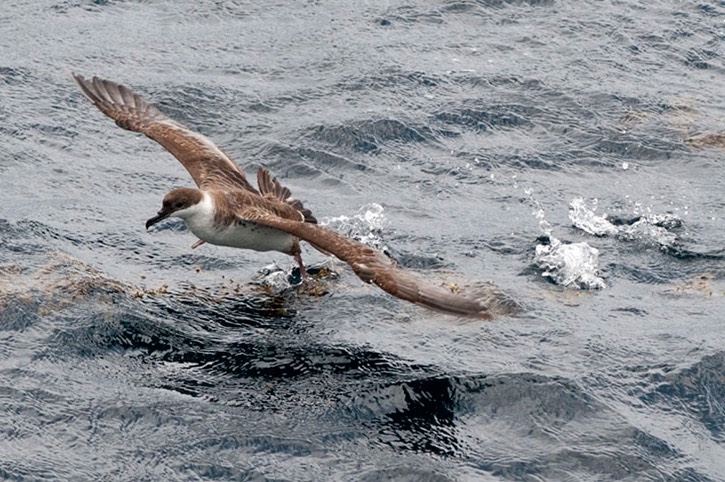 Rafts of Sargassum - a pelagic floating seaweed - provide shelter for smaller fish, creating good hunting grounds for the shearwaters. A take-off with a full belly can look a little clumsy...