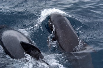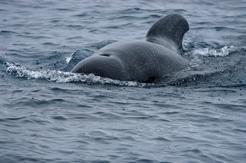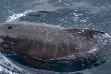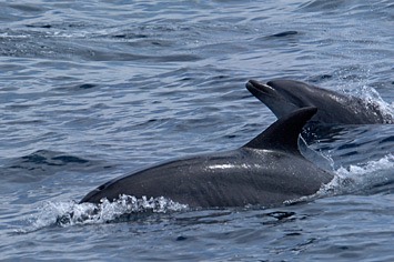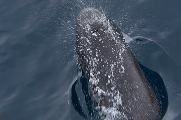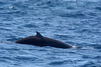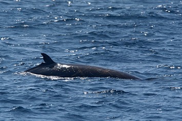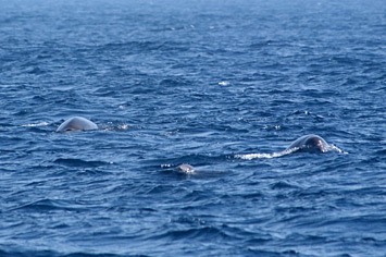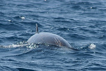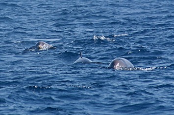 A total of 13 beaked whale sightings were made, but many were too far away or too brief to identify the animals to species level. But on one occasion we were extremely lucky, when a small group of Cuvier's beaked whales (Ziphius cavirostris) swam straight towards our vessel, showing their short, stubby beaks each time they surfaced.