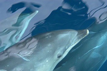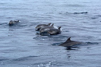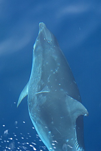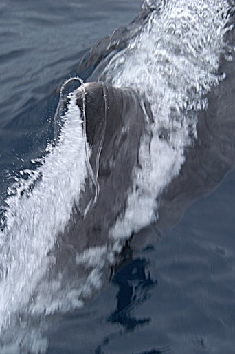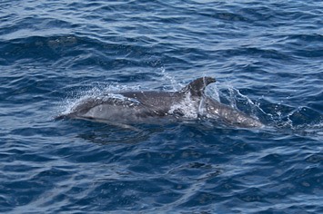 The most frequently encountered species was the striped dolphin (Stenella coeruleoalba), which were seen in large numbers. Unfortunately, striped dolphins don't tend to approach vessels, so we were very happy when a few brave individuals came close enough to have their photos taken.