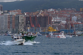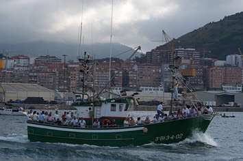The left hand photo shows our research vessel, the Bluefin of Hamble, in Bilbao. Being Spain, there was also the inevitable fiesta, where a huge flotilla of boats of all kinds left the harbour accompanied by an impressively loud display of fireworks.