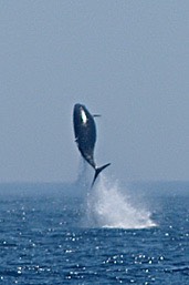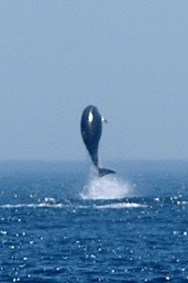 While we usually spent our days systematically searching for the beaked whales, on one memorable day they came to find us. We had just stopped and settled down for lunch, when a huge splash not far off caught our attention. At first we were not quite sure what had caused it, but then a beaked whale breached again - and again, and again! It was quite a spectacular sight, to see such a big animal weighing 2,500 to 3,000 kg, propel itself out of the water so apparently effortlessly. We were not entirely sure about its identity, but assumed that it too was a Cuvier's beaked whale.