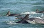 Group of bottlenose dolphins surfacing close together, Cardigan Bay, UK
