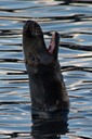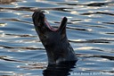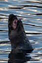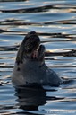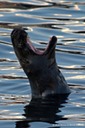 Grey seal bull yawning, showing his teeth, Fraserborough, UK