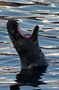 Grey seal bull yawning, showing his teeth, Fraserborough, UK
