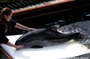 Harbour porpoise (captive) with trainer, Kerteminde, Denmark
