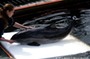 Harbour porpoise (captive) with trainer, Kerteminde, Denmark