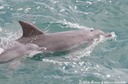 Two indo-Pacific bottlenose dolphins with partly missing dorsal fins, Beira, Mozambique