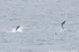 Two rough-toothed dolphins breaching, showing the shape of their beaks, Gabon