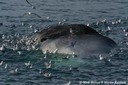 Fulmars feeding on dead sperm whale, west of Shetland, UK