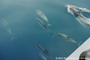 Group of striped dolphins bowriding, Gulf of Corinth, Greece