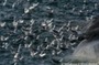 Large number of fulmars feeding on dead sperm whale, west of Shetland, UK