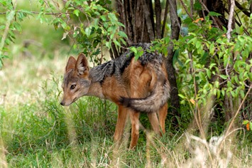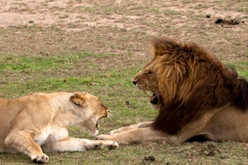 Following the coordinates we had taken in the morning, we went to check out the three lions we had seen at first light. They were still in the same spot and for the time being there were no other cars around. The male got up and we followed him. The two lionesses soon followed and both did their utmost best to seduce him, slinking across his path, rolling over and giving him the come-on. Naturally we hoped to see these lions mating, as this must be a very spectacular event. However, the male was obviously rather shagged out, and didn’t want to know. We thought he was rather wimpish, but later we learned, that he and the two lionesses had been mating for several days already! It seems we caught them right at the end of their honeymoon, when he was apparently convinced that he had done his duty and had only a growl and a slap with his paw left for his ladies!