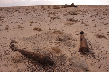 First thing in the morning Mick drove to Camping Abba to see the Scottie twin. The owner was delighted to see our car, as he had used photos from Chris Scott’s book to model his car on. After greasing the front ball joint that was leaking grease badly, we set off for the border. At the first checkpoint a policeman tried to persuade us to give him our solar panel. Stopping by the railway line for Maren to have a pee, we happened to pick the one time of day when the train passes by! It is supposed to be the longest train in the world – we counted 170 wagons. We had difficulty finding the beginning of our route through the minefield and had to reverse back some distance, but eventually found our track and had no problems from there on. The border crossings were swift, with no fees to pay and no cadeaux asked for. Once back in Morocco we made several attempts to find a new beach camp. We found dead turtles and many cetacean bones but nowhere really good to camp, so we ended up back in Whalebone Camp. Things seemed to have changed a bit due to shifting sands and we were greeted by the howling of jackals.