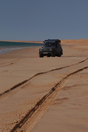 We did some shopping and waited for the insurance man in the morning. Then we set off for Camping Tergit on the beach so we could get an early start driving along the beach piste the next morning. However, we discovered that there was no fuel to be had at any filling station in the city – that explained the queues we saw the previous evening! There had been no petrol for a week or so and diesel ran out the day before. Apparently the ship carrying fuel could not dock due to strong winds. Eventually we drove back to Auberge Menata to ask for help in finding fuel. Our Mr Fix-it – Hamane Sellama the insurance man – managed to acquire 20 litres of diesel from the military. It cost us 25 Euro and a packet of Marlboroughs, but at least we were not stuck in Nouakchott!