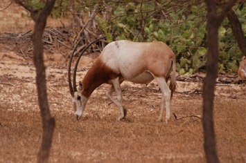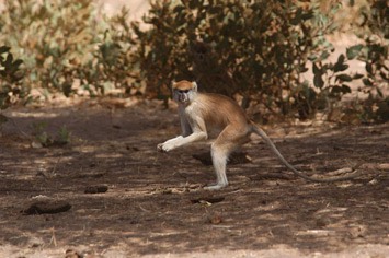 After much postponing of this task, we spent all morning doing our laundry, endlessly boiling the Kelly-kettle to supply hot water. After being through the Sahara, we also eventually dug all the sand out of the tent (It must have been at least one dune!). We drove into St Louis in the afternoon to change money, check our email and do some shopping. There is interesting old French colonial architecture – the river crossing into the town is via an old iron bridge originally made for the Danube. On the pavement outside a restaurant we found a large whale skull – it is unbelievable how and where we always stumble over these things! On the way back to Zebrabar we stopped for a walk at the reserve Guembeul where the endangered scimitar-horned oryx and dama gazelles are being bred in the large fenced reserve. Furthermore, we saw our first wild monkeys of the trip – red Patas monkeys.