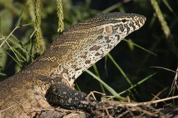 After a short walk to photograph thick-knees and getting our first view of a spectacular red, black and yellow gonolek, we set of for the Djoudj National Park. The tide across the river from Zebrabar was high, so we walked through the ford to test its depth. We then strted Scottie, but the car's starter jammed! We managed to get it released and crossed the ford without further problems. The lagoons south of St Louis held huge numbers of white-faced whistling ducks. North of St Louis the road ran through some nice dry bush country. We saw a magnificent Arabian bustard right next to the piste and a huge monitor lizard at least 1½ m long, as well as more warthogs and Patas monkeys. We passed a beautiful reed-fringed lily pond with jacanas, black crakes, squacco herons and little bee-eaters. When we arrived at the entrance to Djoudj the starter jammed again, but this time we could not release it. After much tapping with hammers and rocking the car back and forth in gear, it seemed the only solution was to take the starter motor off. Soon we had twelve pairs of helping hands – really nice guys who were particularly keen to see the car get fixed as we had broken down in the middle of their football pitch. However, despite taking the offending part off and releasing it several times, the starter kept jamming, so we decided to take it back into St Louis the next day to get it fixed.