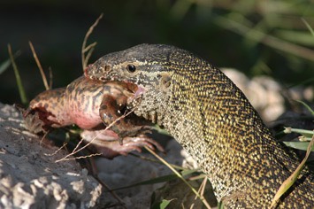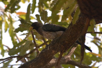We followed the river Gambia to the Grand Mirador – a look-out perched on the edge of the high cliff overlooking a bend in the river. We saw a few kobs, baboons and a fleeing troop of banded mongooses on the way, and had some spectacular views of the river. Two huge monitor lizards were lying on the riverbank – one was a real monster. Also there were some quite big crocs. Mick tried fishing – spinning – but no luck. It seems small live frogs are the bait to use here… - so back to bird watching! More Egyptian plovers and parakeets screeching overhead. Best birds were on a short evening drive when we saw a handsome male red-footed falcon and a huge spotted eagle owl.