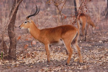 We started our first drive at 7am. Having our guide on the roof seemed to work quite well, as we slowly made our way on narrow winding pistes through dense mixed woodland with patches of an impenetrable looking understory of bushes, creepers and very tall grass. We first checked out a hippo pool a short distance from the camp – there were a few distant heads visible on the surface – and then came across a few waterbuck and quite frequent sightings of kobs and bushbucks. We saw a few roans, but they seemed quite nervous and ran off immediately. A pair of side-striped jackals went about their business in a relatively open area, but most animals here seem very difficult to view and are almost always seen through a veil of branches and leaves. There were lots of striped ground squirrels, baboons and green monkeys. After a long lunch break, we had an evening drive along the river. At a ranger station they have two caged leopards – hand-reared orphans that cannot be returned to the wild. The size difference between male and female was very striking, and also she rolled against the wire to be tickled, while he stood aloof and made hungry-sounding noises at approaching rangers. We also had good views of Egyptian plovers (alas, ignoring the large crocodiles nearby), grey kestrel, shikra, fish eagle, red-throated bee-eaters, gonoleks, blue-bellied rollers, giant kingfishers, grey-headed kingfisher, wattled plovers, rock partridges, drongos,… Back at camp, an almost identical Landcruiser turned up, with a young Dutch family returning from working in Mali.