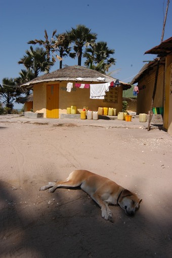 We drove into St Louis for an oil change, internet and shopping. Maren insisted on buying a jar of Nutella for more than 7.50 Euro (Maren: That is because Mick is always eating half of it!)! We gave up on souvenir shopping as there were too many young hustlers in the town. On the way back, we stopped at the telecentre near Zebrabar, where the young manager remembered us from our previous visit – we gave him some money to buy a new football. We had brochettes and chips in the evening, with all the camp dogs gathered around, attracted by the smell of charcoal grilled meat. It rained slightly during the night – our first rain for quite some time.