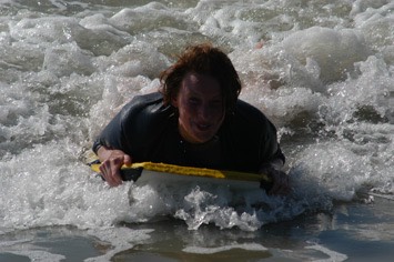 We went for a little walk following baboons up the road and had a good surfing session in the afternoon, but otherwise spent a very lazy day. On our walk in the evening we found part of a dolphin skull on the beach. Many people have arrived for the weekend and the place is full to bursting. Due to the heavy use of the shower/eco-toilet, a little pond and its associated wildlife has developed there and in the darkness Maren stepped on a frog.