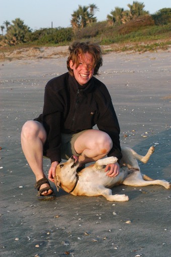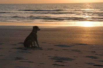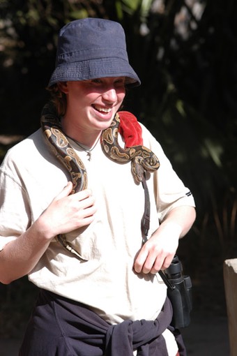We took a ten-day holiday on the beach – mainly doing nothing, relaxing, and surfing on body boards. We went into Kartong twice, the first time to use a telephone and the second time to visit the sacred crocodile pool. On the first occasion we met a young boy of around twelve years who busily tried to engage us in a conversation and offer us his services as a guide. It was nearly impossible to get rid of him, as he kept trailing behind us. In the end he got pretty nasty, as we didn’t want to give him any money for all his “services”. That was definitely our worst hustling experience so far! When we went to the crocodile pool, we first met another hustler, although he was fairly low-key, and then met up with the young boy again! Great! Fortunately, they left us alone for quite some time, so that we could watch the crocodiles and the birds around the pool. Then the boy came back, trying to engage us in conversation again. We were fairly mono-syllabic – but it didn’t work. When we left, he started demanding money again and, when we didn’t give him any, he told us that he had a knife and that he would stone us!!! Mick then threatened to take him to his father and we walked into the village, which eventually sent this boy running. However, it was a really bad experience, which left us feeling slightly wobbly and rather jumpy whenever somebody approached us. We also visited a nearby reptile farm, which is run by a French guy. It is set in a nice bit of bush, and he suggested that like-minded people should buy some land to protect it from the recent development going on there. He had some snakes in pits, including a royal python he draped around Maren’s neck and two mean-looking puff adders – which we didn’t let anywhere near us! – as well as lizards, chameleons and terrapins. Boboi is a great place to relax – we put our tent up in the shade of palm trees, everybody was extremely friendly and cool and they had the sweetest dog there we have met on this trip. We, basically, adopted “Simba” after a few days and took her for long walks along the beach in the evening. Leaving her behind felt really weird, as she was such a good companion. The water temperature of the sea was really nice, and going for swims and surfing was a welcome break from the heat of the day.