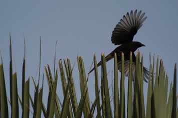 We got up early to watch for dolphins and birds and Mick tried some fishing from the jetty, but didn’t catch anything. We didn’t see any dolphins but did see lots of weaverbirds, white-billed buffalo weavers, as well as sunbirds, coucals and gonoleks. On a short walk before breakfast we discovered “our” butterfly – the African Monarch – sitting on a spiky grass full of vicious burrs. Breakfast was very late but also very good. On a short walk through the nearby bush we saw a Patas monkey. After a fantastic lunch of ladyfish – just for the two of us – we walked along the beach to the northern end of the island, which in fact is already in Senegal! We saw lots of birds again, but no dolphins. Dinner was salad, vegetables and rice and pancakes with syrup for dessert. In the evening, they light all the paths around the huts with paraffin lanterns, which gives it a very romantic flair!