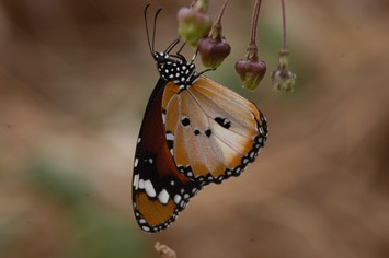 Again, no dolphins – but what else to expect on a Friday 13th?. We walked along the beach before breakfast and then back into the bush afterwards. Maren spotted another Patas monkey, but unfortunately it was gone before Mick could see it. On a flame tree we saw two more species of sunbird. In the bush we came across a guy who whistled and shouted at us, and we thought he said “dolphin”, so we raced back to the lodge, just to discover that it was a false alarm. We had buffet lunch with another group of Brits, but none of them stayed. It was overcast but very humid, so we just crashed out on the beach. After a snooze in the shade, we chased some more butterflies and then sat watching the seas go by and stacks of osprey flying around. At night, we found a huge gecko in the toilet – now Maren knows what nearly scared her to death the night before!