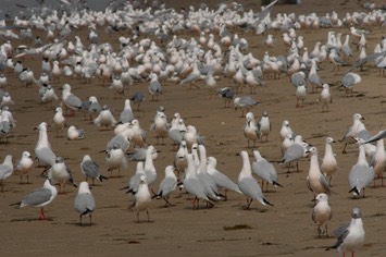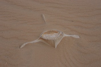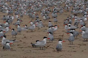 We poured the rather dirty looking military diesel into the tank before setting off at first light, only to get lost in the suburbs looking for the way out of Nouakchott. Eventually we found the new road north and followed it but missed the best piste to the beach and had to follow a very tortuous route through the dunes, but at last we made it and headed on up the beach. We stopped to record a stranded porpoise and two dolphins, one of which was a bottlenose dolphin and the other one we couldn’t identify. At some point we stopped, as the tide was nearing the top of the beach.. A low headland prevented us from continuing along the beach and the sand behind it appeared alarmingly soft. We used the time to look (and find) more dolphin bones. Suddenly, a Mercedes car appeared on the other side of the headland. It seemed to turn back but after a few minutes roared down through the sand behind us and sped on up the beach. Not to be outdone by a mere two wheel-drive car, we hastily set off and followed their tracks around the headland and back onto the beach again. We arrived at Nouamghar and went to the National Park office before driving out to the headland at Cap Timiris. There were flocks of thousands of terns, plus spoonbills, pelicans, gulls and many waders. It was extremely windy: a gale blew through the night causing the tent to flap so much that we couldn’t sleep.