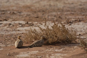 Woken early in the morning (6:00) by the competing muezzins of Tiznit, we headed south towards Layoune, the New Town of what once was the Western Sahara. At one point we were astonished to see a new Landcruiser, which had been converted into an open car, speeding across the desert filled with important looking dudes in red headdresses. A second similar car approached and we could see they were carrying falcons on their hands. Wealthy Arab falconers! As the landscape became dryer and vegetation more sparse, the birds changed too. A long legged buzzard settled to give us good views and then we started seeing different species of wheatears and larks. Cap Juby was rather disappointing so we carried on to a beach resort just south of Layoune, where we camped in a vast empty campsite together with an English couple on a motorbike and a couple of the rally cars. One of these was a Russian Lada Niva that had driven all the way from Moscow.
