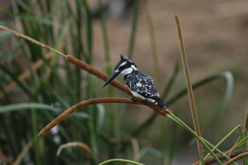 We set off for Lamin Lodge at 7:25 in convoy with Christine and Sven from Hamburg (driving a rusty HJ60 they plan to sell down here) for a dolphin watching boat trip. However, the Harmattan was blowing, the air was full of dust and the sea was very choppy when at last we reached the open water of the Gambia river near Banjul, having waited an hour for the boatman to turn up. An additional crewman was taken to bale out continuously, as the planks leaked and we shipped quite a bit of water in the choppy seas. So we turned back early, being quite soaked. We came back through the mangroves, but there was not much bird life to see. Peter, the owner, was a little cross with his manager for letting us go out in such poor conditions, so he gave us a part refund and treated us to a free lunch!