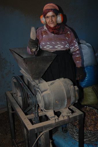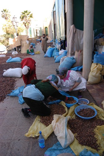 We turned south to the argan forest in the morning. Eventually we found some goats high in the trees which we wanted to photograph, well lit, on the right side of the road and with an old man as goatherd. After taking photos there we went on to visit the women’s co-operative at Tamanar to see how argan oil is made and to buy oil, soaps and various lotions. They dry the nuts in the sun and shred off the outer husks in old machines before each nut is laboriously cracked by hand to extract the kernels. These are then pressed to make the oil. We then drove east on a newly surfaced road through the High Atlas to Marrakech. We saw no other cars for hours, but enjoyed spectacular scenery, many wild flowers in bloom, saw a red fox, a snake and many birds, including the africana race of the chaffinch. We arrived in Marrakech in the late afternoon and found difficulty finding a hotel with secure parking, so ended up in the Ibis. In the evening we took a taxi to the Djem el Fnaa for a short walk in the souk before eating in the square. It was fun sitting there eating our brochettes while the stall holders called out in many different languages, trying to attract customers to come and eat. Afterwards we avoided snake charmers and performing monkeys, but listened to some Berber music before heading back to the hotel.
