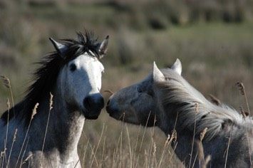 We set off for a walk around the second nature trail at Salin de Badon, just beyond the one we had walked the day before. It was a bit disappointing, with nothing much to see except redstarts, and we were plagued by mosquitoes and a cold mistral was blowing. The afternoon was spent searching for photogenic ponies, which we eventually found not far from St Maries. Maren climbed onto the roof to take pictures of fighting horses, which attracted the stares of passing locals. It was very cold but the results were worthwhile. We stopped in the village to visit the crypt in the church to see the black madonna (actually Saint Sarah).