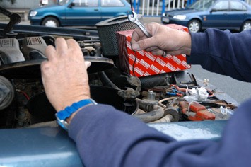 Mick: Scottie the car gave us a fright the day before we were due to set off, when we went to the self-help garage in Bremen to change the oil. The starter jammed right in the garage entrance. Chris had warned of this possibility, but in my experience a jammed starter just meant the thing made impotent clicking noises when you turned the key. So I was unprepared for the fairly dramatic symptoms of a starter that just keeps turning the engine over, even when the ignition is switched off – with horrible screeching noises and smoke coming from under the bonnet I immediately understood why there was an unfamiliar quick-release connector on the earth side of the batteries!