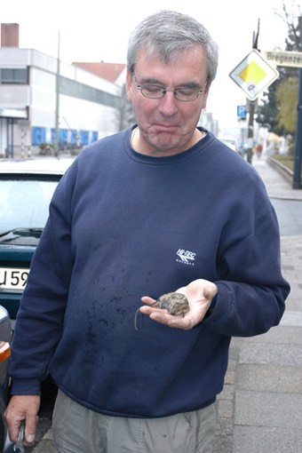 We woke up to a hard frost – it was -5ºC during the night! We had to scrape ice off Scottie before setting off. There was no mouse in the trap. We drove through driving snow to arrive in Bremen at 11:00. Have we made a big mistake in returning north so early?